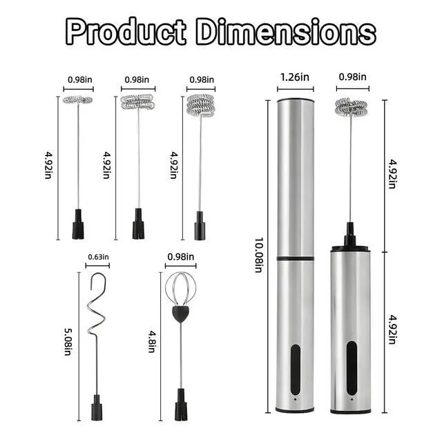 Meet your new kitchen essential: our stainless steel handheld milk frother, designed with 5 interchangeable heads to handle every task from morning coffee to weekend baking. This versatile tool turns ordinary moments into delicious creations, with a durable, food-safe stainless steel body built to last.