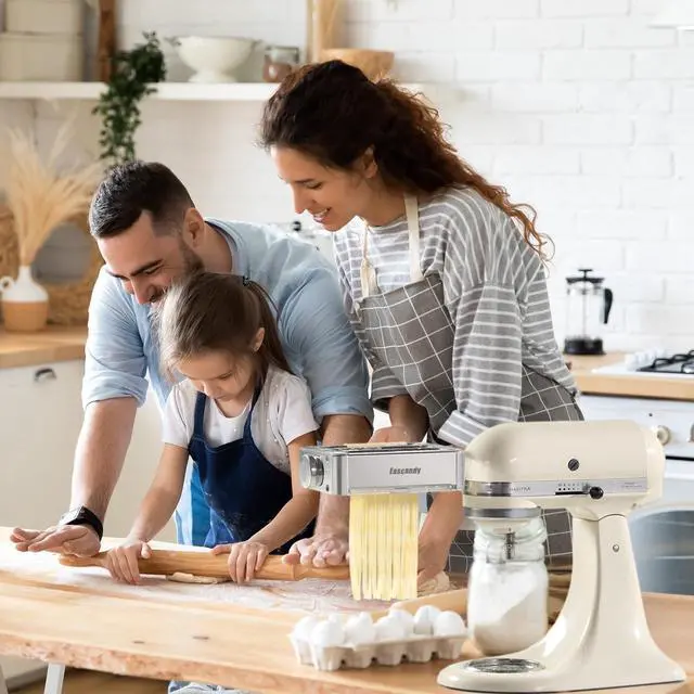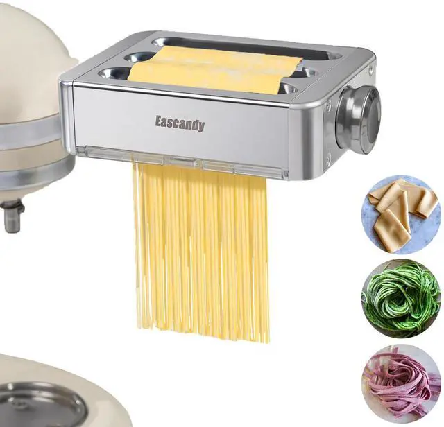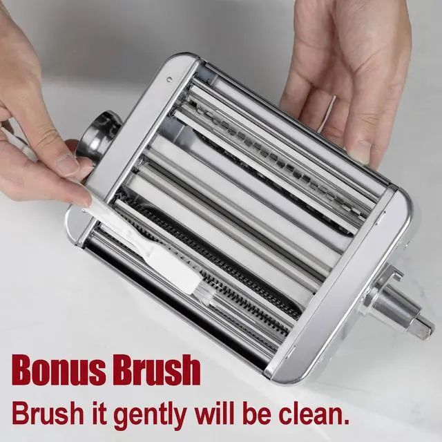 Crafted from high-quality stainless steel, this durable attachment is designed to deliver long-lasting performance and make pasta preparation at home easier than ever. The 3-in-1 design includes a pasta roller and cutters, allowing you to create a variety of pasta types with ease. Whether you're rolling out lasagna sheets or cutting perfect spaghetti noodles, this attachment ensures you achieve restaurant-quality results every time. Featuring a highly polished surface and an adjustable 8-speed knob, this pasta attachment offers smooth and effortless operation. The 8-speed settings provide precise control, allowing you to customize the thickness and texture of your pasta to suit your preferences. Safety is a top priority with the eascandy Pasta Attachment. It comes equipped with a plastic protective shell at the bottom to prevent hand injuries, giving you peace of mind while you create your culinary masterpieces. Cleaning up is a breeze with the eascandy Pasta Attachment. The stainless steel construction wipes clean in seconds, and we've included a bonus brush to help you reach every nook and cranny, ensuring your attachment stays in pristine condition. This pasta attachment is not just a tool; it's a perfect gift for home cooks and pasta lovers. Enhance your culinary skills and impress your family and friends with homemade pasta that tastes just like it came from your favorite Italian restaurant. Add the Eascandy 3-in-1 Pasta Attachment to your kitchen arsenal today and enjoy the endless possibilities of homemade pasta!