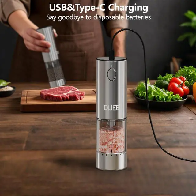 TYPE-C Fast Charging for Uninterrupted Cooking: No more preparing batteries! No more worrying about running out of batteries while preparing meals! Simply plug it into the power supply with the included cable, and you will soon be grinding uninterruptedly. This environmentally friendly design eliminates the need for disposable batteries, saving you money and reducing waste. Enjoy the pleasure of non-stop seasoning dishes
