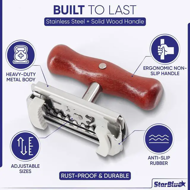 Say goodbye to jar struggles forever. The StarBlue Jar Opener is your kitchens secret weapondesigned to help seniors, arthritis sufferers, or anyone with weak grip strength open stubborn jar lids and bottle caps with ease. Whether youre reaching for a jar of pickles, pasta sauce, or your favorite preserve, this adjustable tool fits lids from 0.4 to 4.1handling everything from tiny bottle caps to large glass jars. Crafted with a heavy-duty stainless steel core and an ergonomically polished wood handle, this opener gives you leverage without discomfort. It grips tight and twists looseeven on vacuum-sealed jars. Plus, StarBlue includes 2 extra anti-slip rubber grip pads, so you can open with confidence, even on slick or oily surfaces. Whether youre buying for yourself or looking for a thoughtful gift for an elderly loved one, this is more than a kitchen gadgetits a tool of independence. Durable, reliable, and easy to use, the StarBlue Jar Opener belongs in every home.