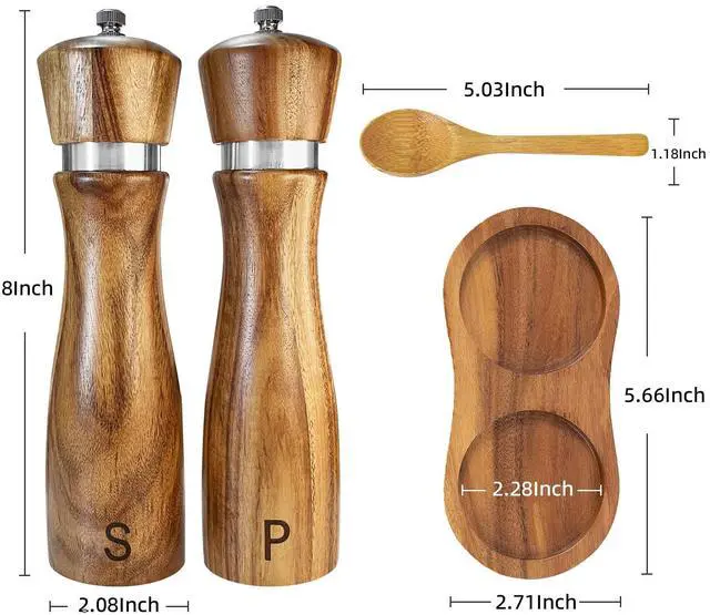 Acacia Wood Tray/Pepper Mill Holder: no more spice crumbs on your dining table or worries about mills knocking over.