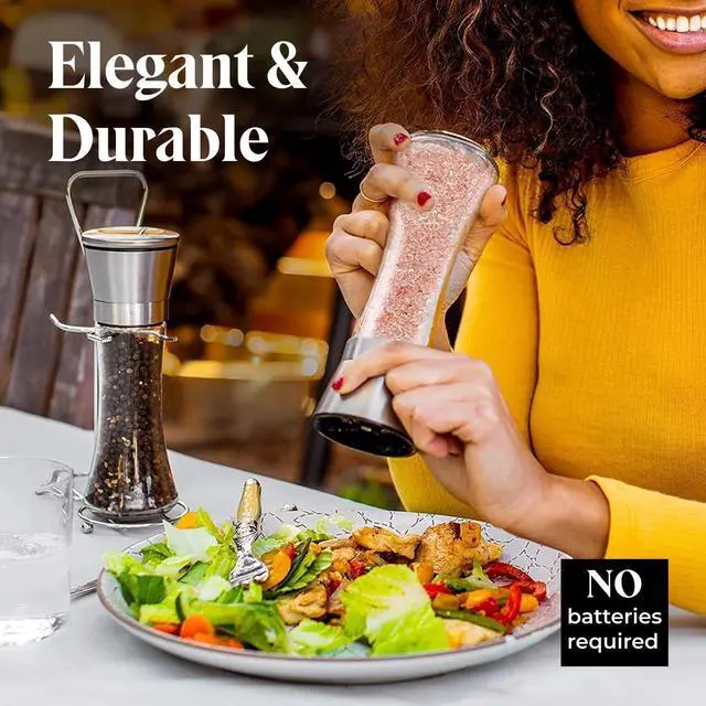 | Adjustable grind + mess-free | Easy-pour works w/grinders | S&P grinders + Himalayan salt | Easy electric grinding | S&P grinder + Himalayan salt | All types of cooking | Making Tea and boiling water |