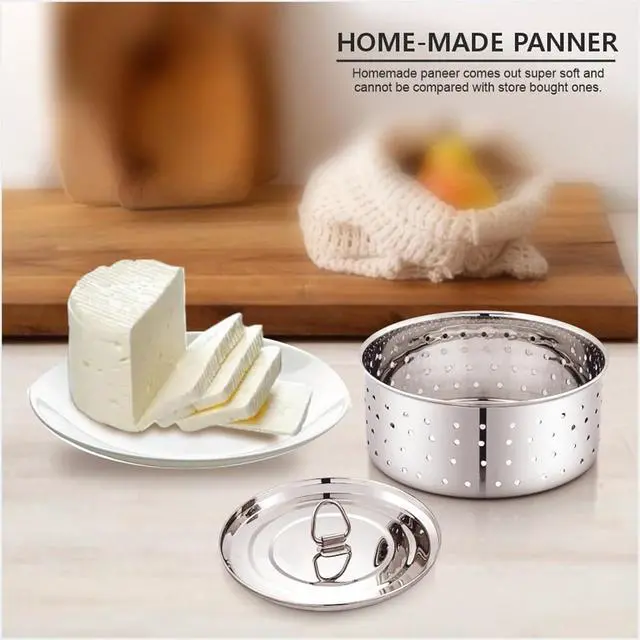 Yuktha Stainless Steel Round Paneer Mould | Paneer Strainer 500ml | Paneer Press Mould Maker (Round, Pack of 1, Silver)