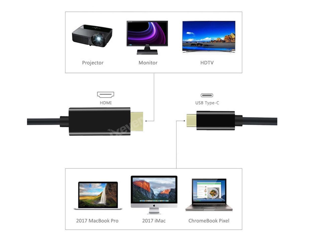 - USB 3.1 Type C to 4K HDMI Adapter Cable: Use iXever USB Type-C to HDMI Cable with your USB-C device to view sporting events, movies, video games, and photos/albums directly on your HDMI-equipped monitor/display/TV