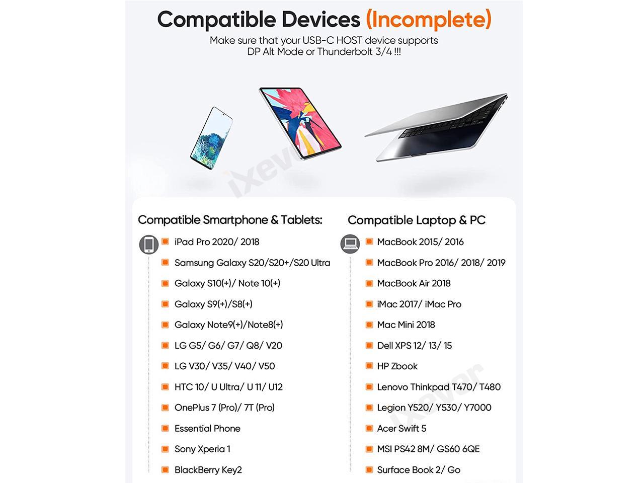 - Compatible with MacBook Pro 16''/15/13'' (2021/2020/2019/2018/2017), MacBook (2017/2016/2015), iPad Pro (2021/2020/2018), Mac Mini (2018), iMac (2017); Surface Book 2; Galaxy Book, Galaxy S21/S20/S10/S9; Dell XPS 15/13; Chromebook, Chromebook Pixel, Pixel Slate, Pixelbook Go, and others (see detailed product description section)