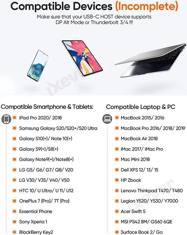 1x iXever USB C to HDMI Cable 6Ft (4K@30Hz).