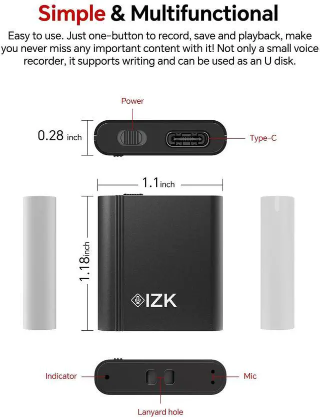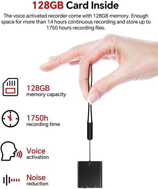 128GB Digital Voice Recorder, Rechargeable Audio Voice Activated Recorder Perfect for Recording Lectures, Meetings, Conversation and Interviews