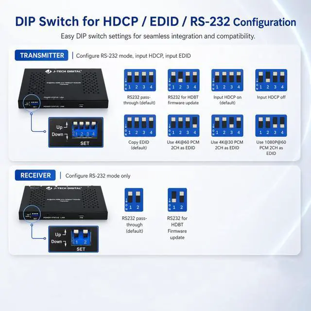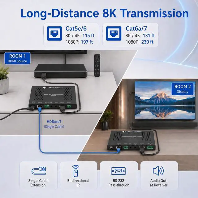 ![Alt view image 5 of 7 - J-Tech Digital 8K HDMI Extender over HDBaseT, 8K@30Hz 4:4:4, 4K@120Hz, HDR10, HDCP 2.3, IR & RS232, PoC, up to 131ft/40m over Cat6a/7 [JTECH-EX8K30-35M]](https://c1.neweggimages.com/productimage/nb640/AAFFS26042414826UBE.jpg)