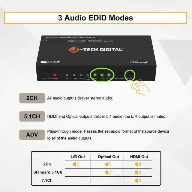 ![Main image of J-Tech Digital 4K HDMI eARC/ARC Audio Extractor, 4K 60Hz HDMI to Optical + RCA L/R Converter, Digital to Analog DAC Audio Converter for HDTV Laptop Blu-Ray Gaming Consoles [JTECH-4KAE]](https://c1.neweggimages.com/productimage/nb640/AAFFS25121716XR8ZDB.jpg)