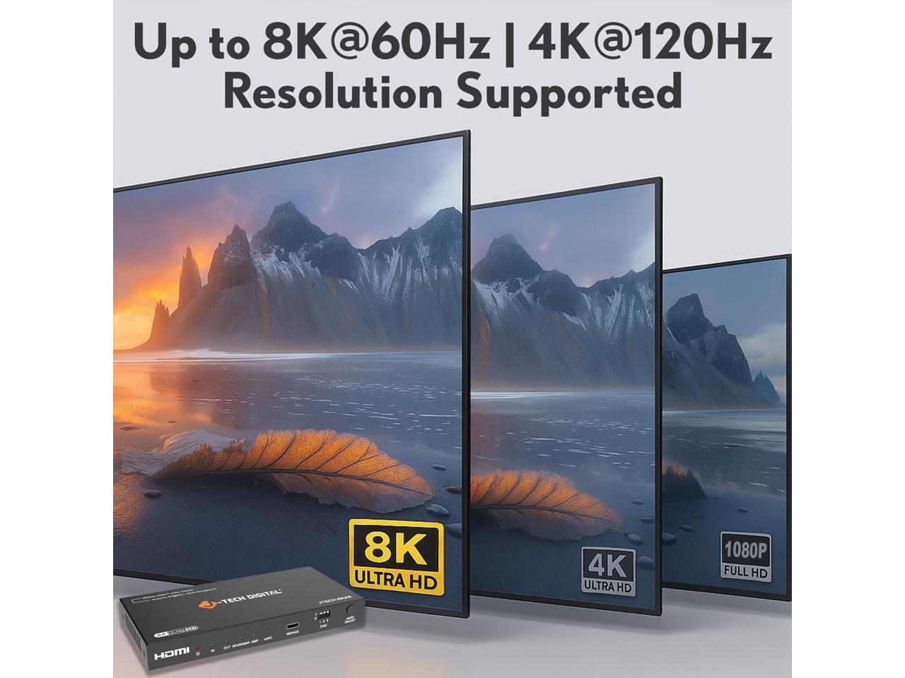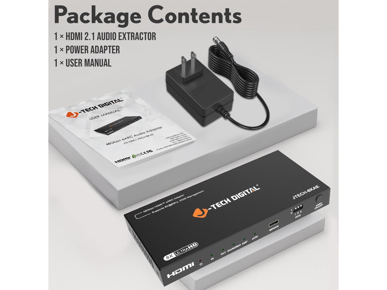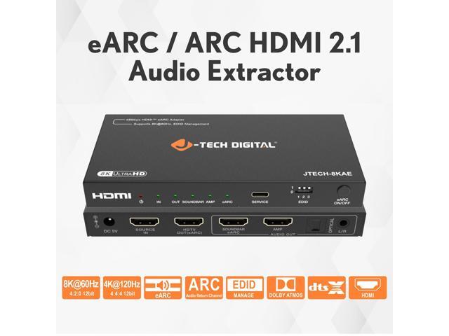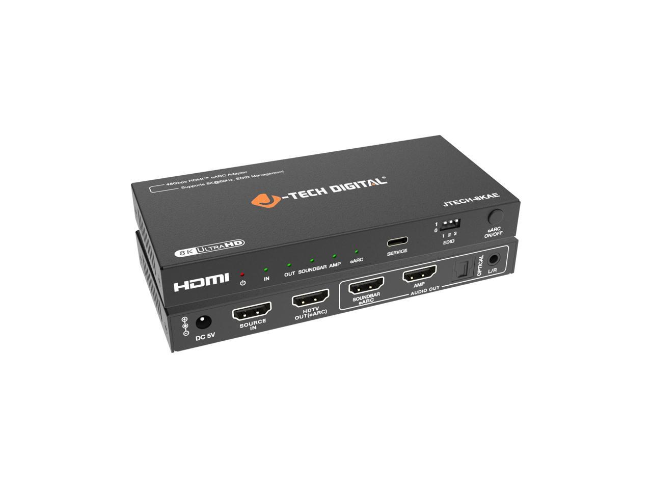 J-Tech Digital 8K HDMI Audio Extractor with eARC ARC 8K 60Hz 4K 120Hz, HDMI to Optical L/R Converter Adapter, HDCP 2.3 HDR CEC EDID [JTECH-8KAE]