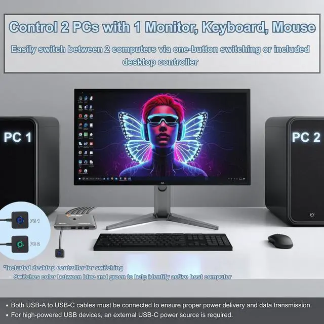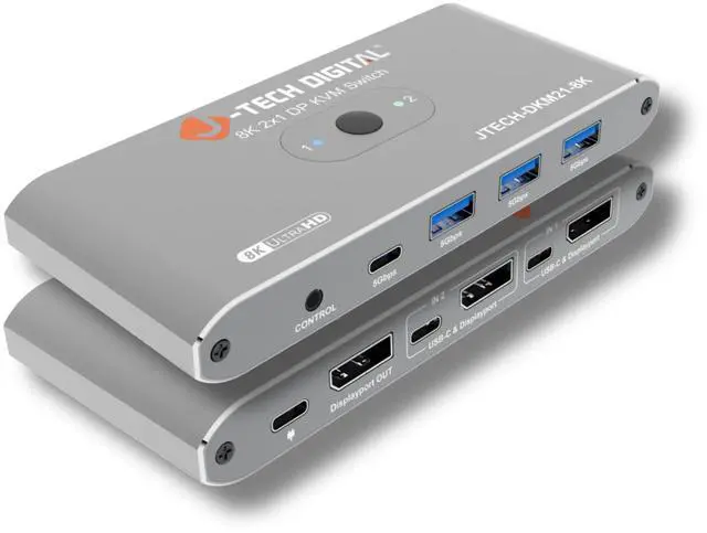 ![Alt view image 6 of 7 - J-Tech Digital 8K DisplayPort 1.4 KVM Switch 2 Computers 1 Monitor, 8K@60Hz / 4K@240Hz Dual PC DP KVM Switcher with 4 USB 3.0 Ports (3 USB-A + 1 USB-C), Includes DP & USB Cables [JTECH-DKM21-8K]](https://c1.neweggimages.com/productimage/nb640/AAFFS26030514NBWIF1.jpg)