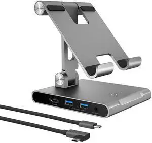 j5create Adjustable Tablet Stand with USB Type C Docking Station for iPad Pro/Air/mini : 4K60 HDMI, 2 x USB-A 5Gbps, 100W PD Charging, microSD/SD Card Reader, 3.5mm Audio Jack (JTS224)