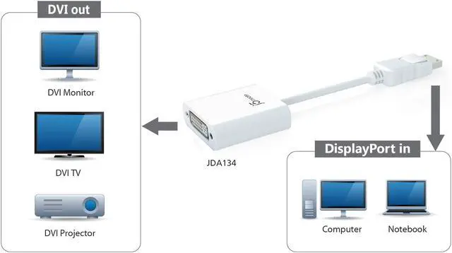 j5create’s DisplayPort adapters allow you to quickly and easily connect your Mac or PC to an external monitor, HDTV, projector or other display device using a VGA, DVI, or HDMI input. Once you’ve experienced multiple monitors, you’ll never want to go back to a single monitor again.