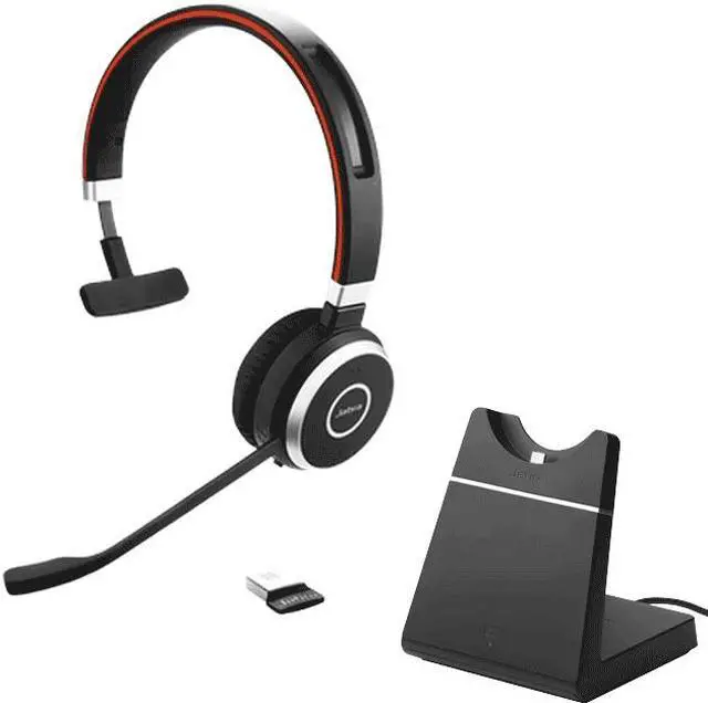 Jabra Evolve 65 SE UC Mono Active Noise Canceling Bluetooth On Ear Mobile Headset with Charging Stand, Black (6593-833-499)