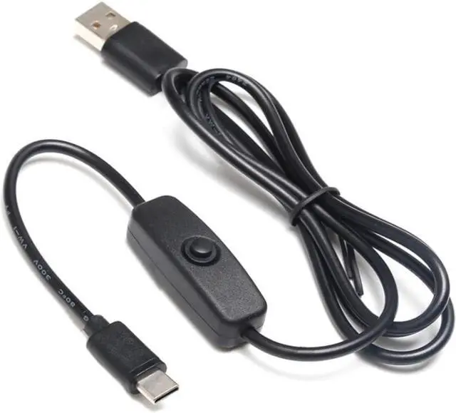 USB Type-C to USB Type-A with inline switch Designed for use with SBCs like the Raspberry Pi 4B Works with phones other devices as well Thick wire and molded connectors Length: 3 Feet Maximum Current: 3A