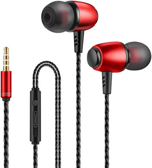 Features include an on-cable microphone, a control button, and an analog volume adjustment slider