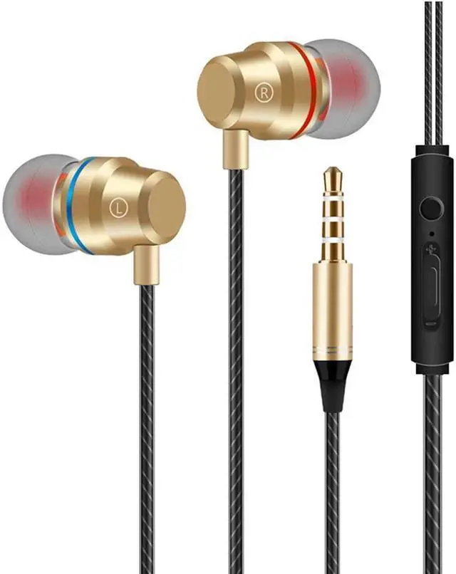 Features include an on-cable microphone, a control button, and an analog volume adjustment slider