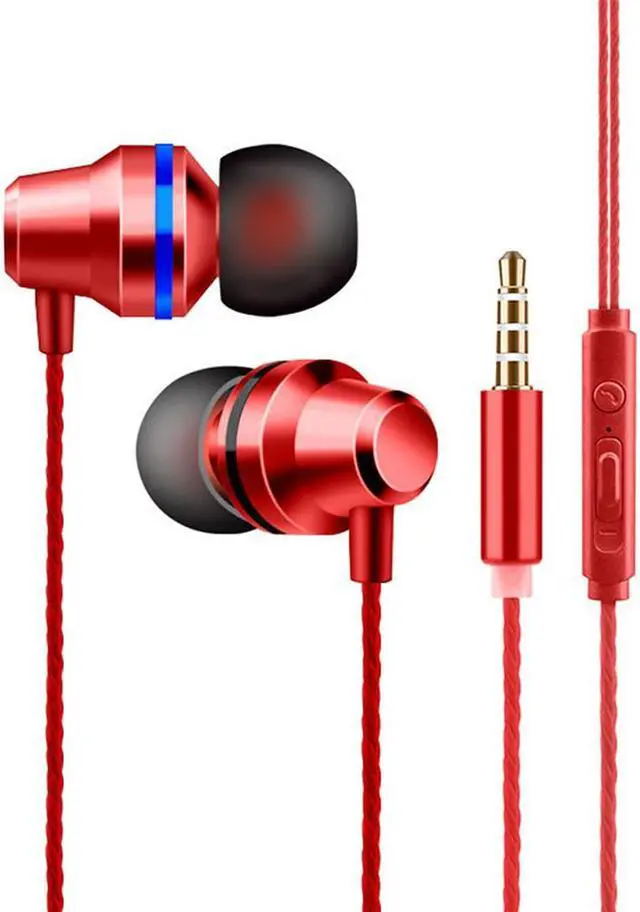 Features include an on-cable microphone, a control button, and an analog volume adjustment slider
