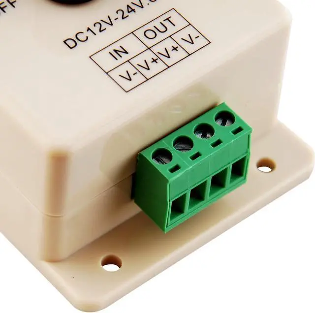 Control the brightness of single color LED strip lighting. The terminal connectors and mounting holes make this a great option for permanent installation.