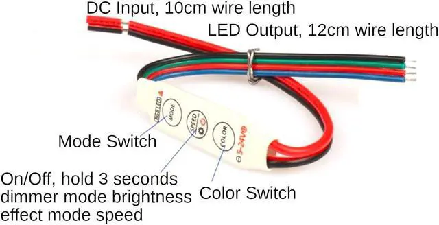 19 Color Changing Effects with 5 Speed Levels 20 Fixed Colors with 5 Brightness Levels