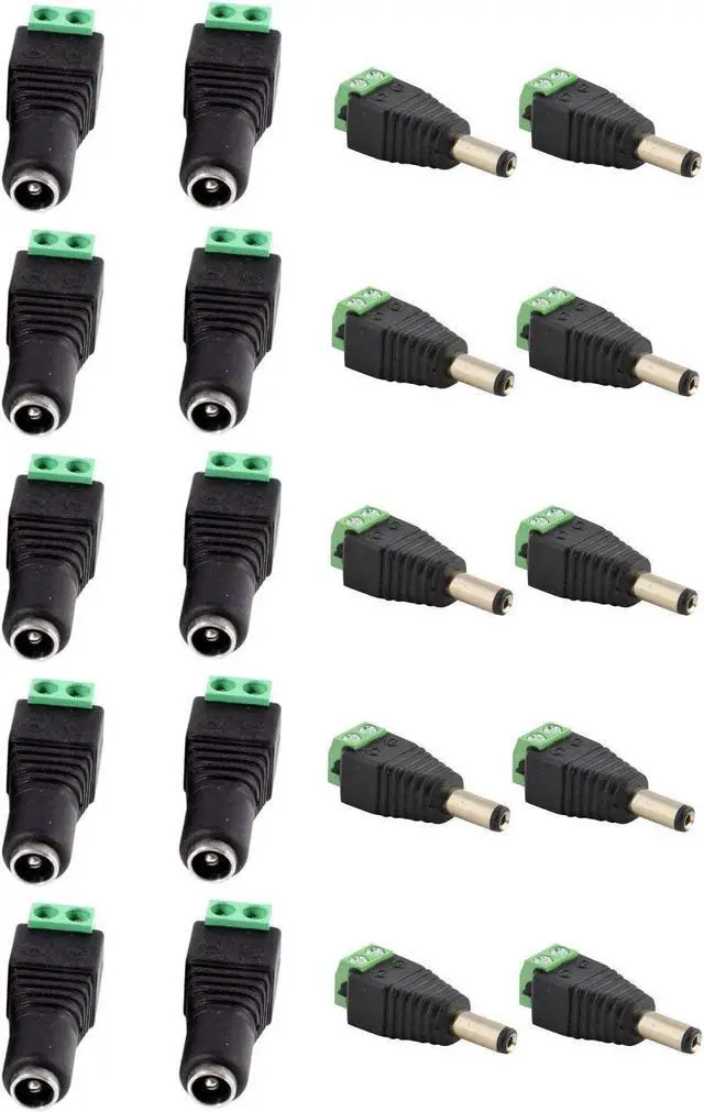 These 5.5 mm x 2.1 mm DC barrel power connector jacks and plugs can be used for LED lighting, CCTV, and various electronics. This barrel connector is the most common connector used for 12V and 24V DC power. Simply loosen screws, insert wire, and twist the screws shut using a screwdriver. No electrical tape, no splicing, and no crimping required.