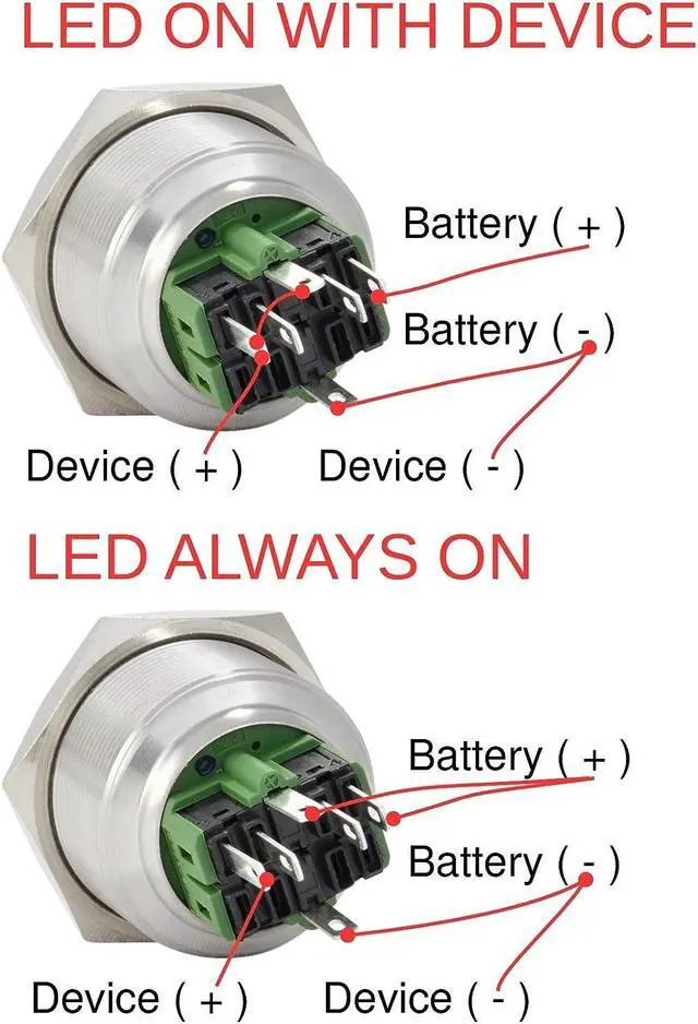 Operation Type: Latching/Maintained (Push it, ON; Push it again, OFF)