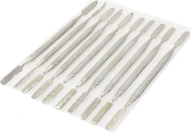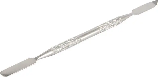 Hardened steel pry tool for repair, hobby, craft and more. The dual sided pry tool is straight and rounded at the tip on one end and bent at a 45 degree angle with a narrow pointed tip on the other. It measures 6.25 in (160mm) in length.