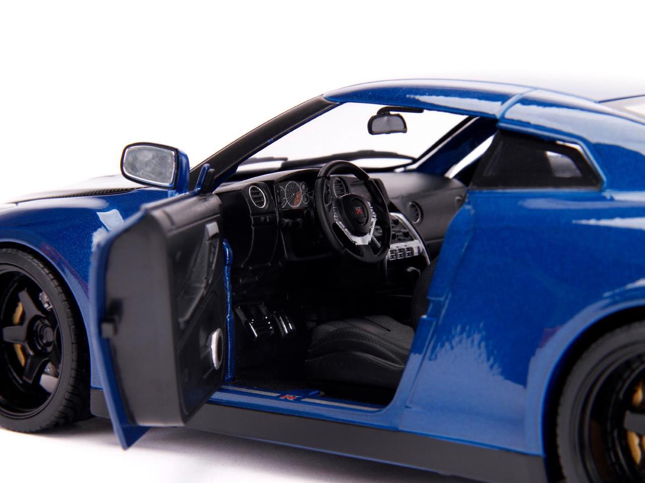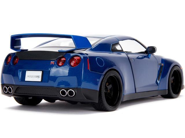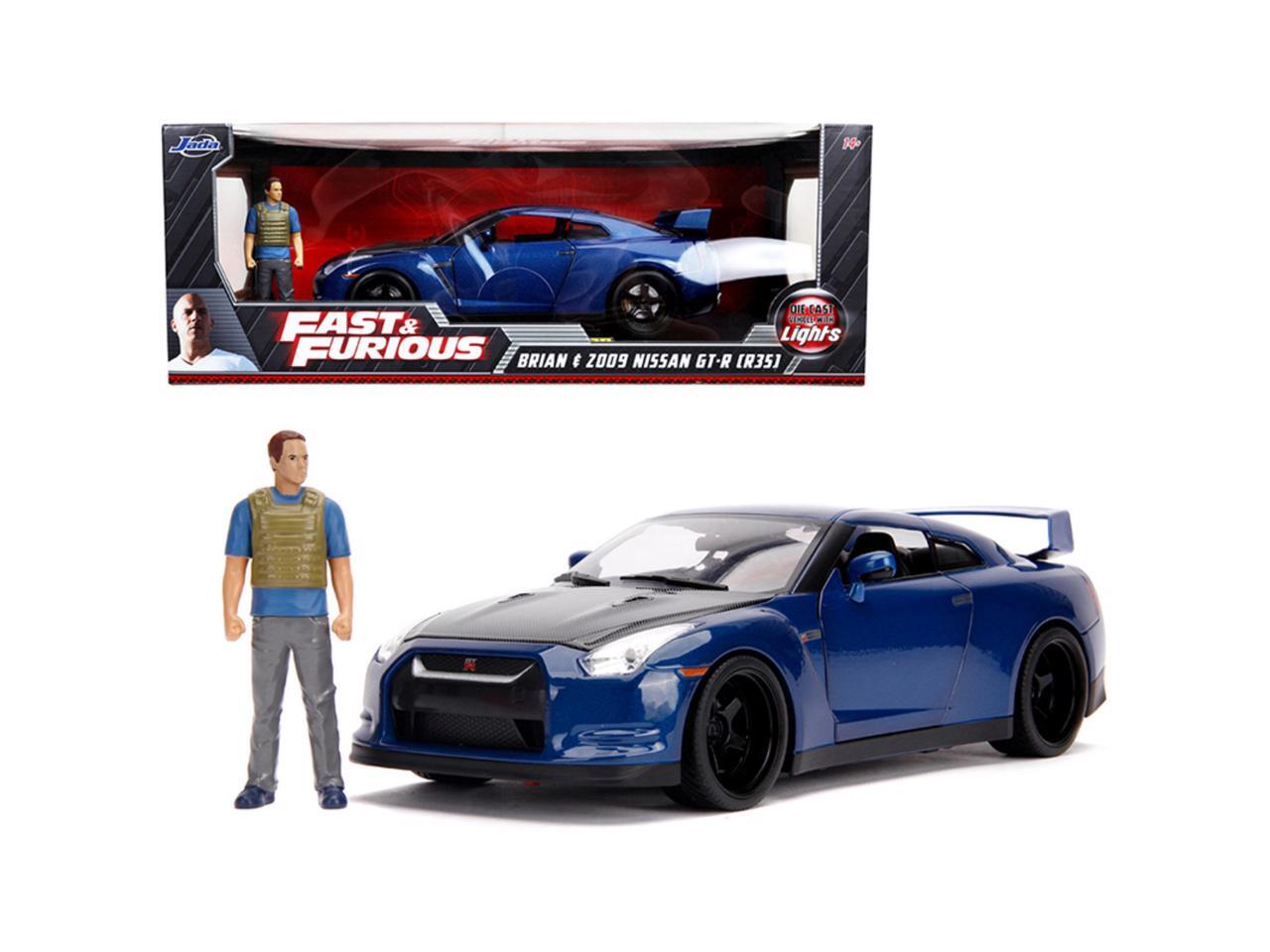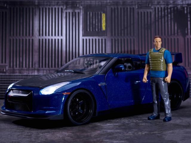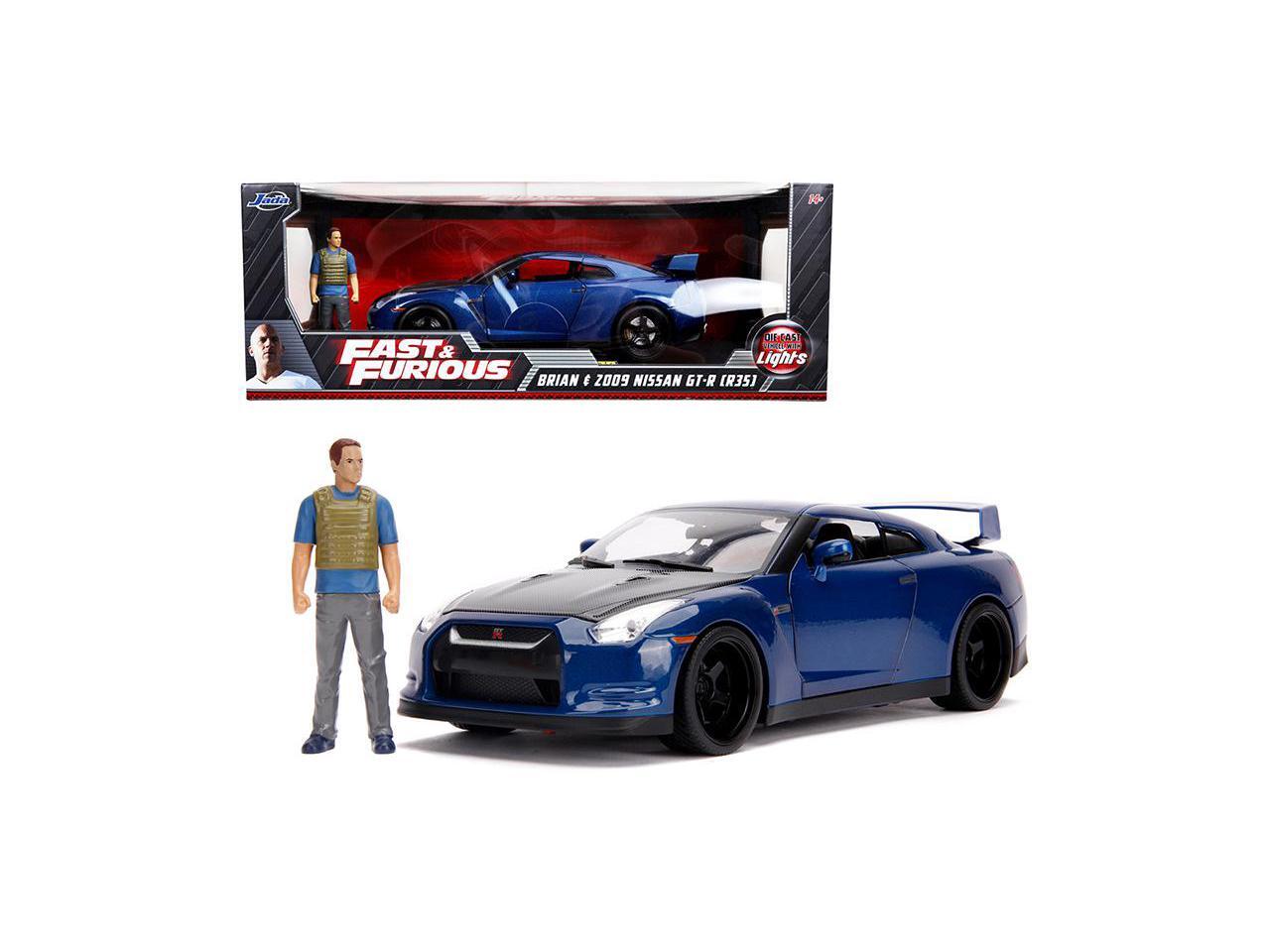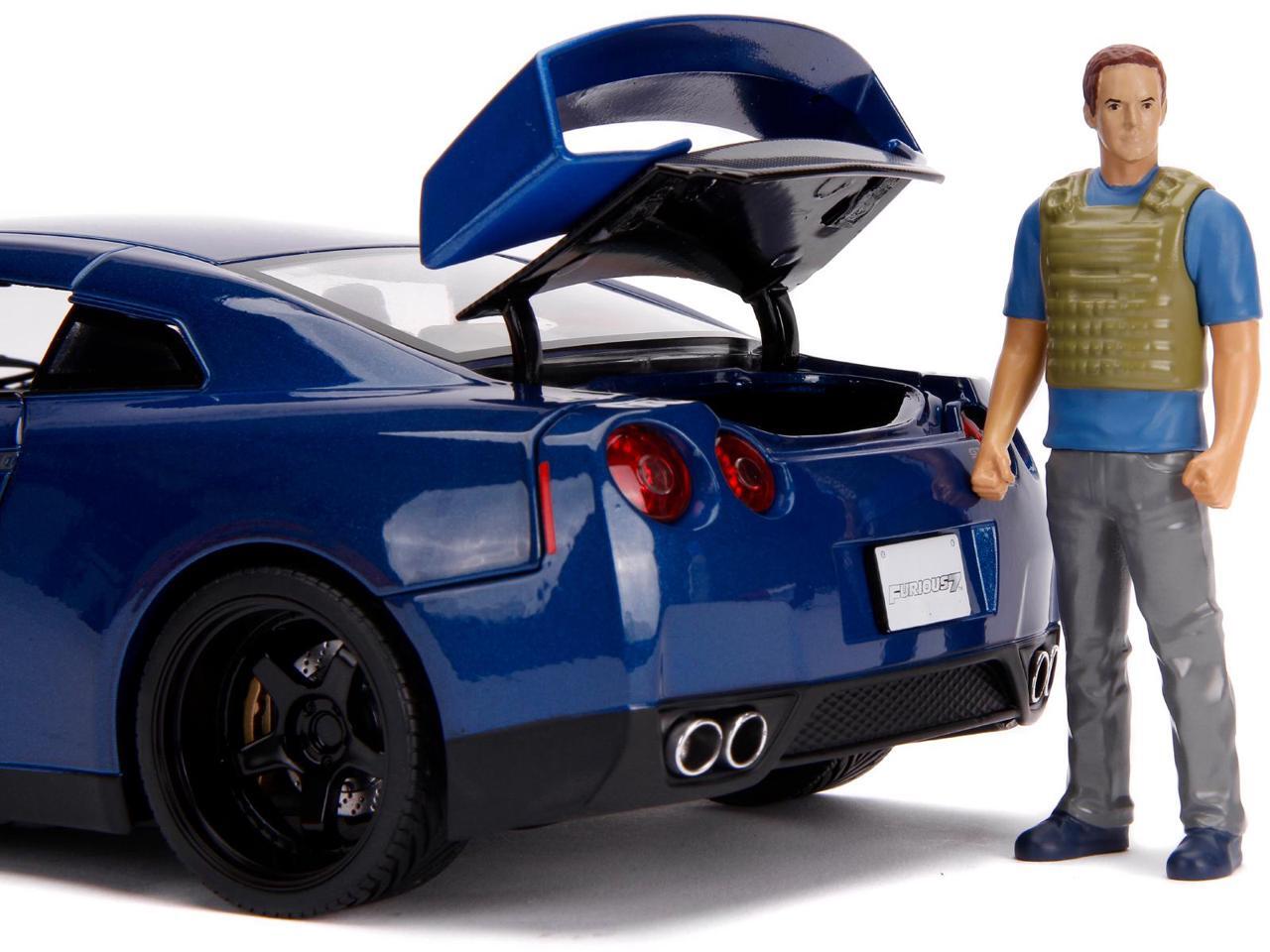 2009 Nissan GT-R (R35) Blue Metallic and Carbon with Lights and Brian Figurine "Fast & Furious" Movie 1/18 Diecast Model Car by Jada