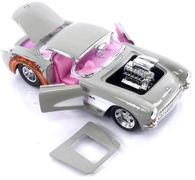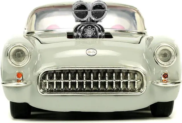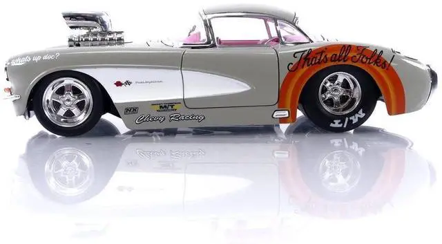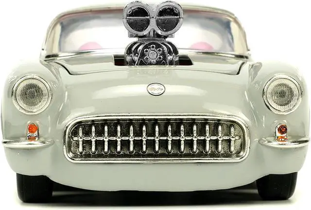 Brand new 1/24 scale diecast car model of 1957 Chevrolet Corvette Beige with Pink Interior with Bugs Bunny Figure "Looney Tunes" "Hollywood Rides" Series die cast model car by Jada.