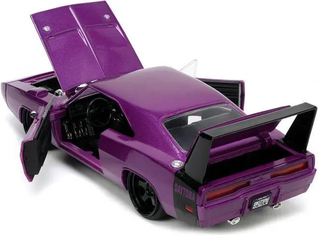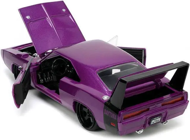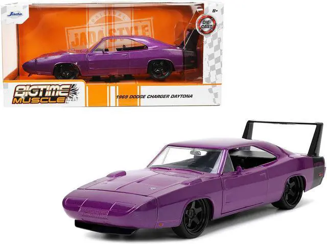 Brand new 1/24 scale diecast car model of 1969 Dodge Charger Daytona Purple Metallic with Black Tail Stripe "Bigtime Muscle" Series die cast model car by Jada.