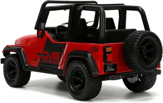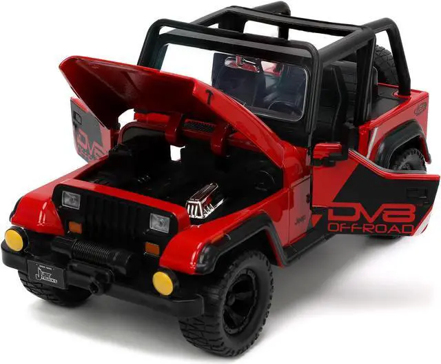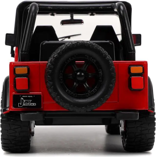 Brand new 1/24 scale diecast car model of 1992 Jeep Wrangler DV8 Off-Road Red with Matt Black Stripes with Extra Wheels "Just Trucks" Series die cast model car by Jada.