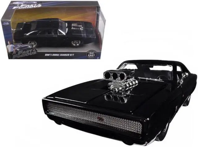 Brand new 1/24 scale diecast car model of Dom's 1970 Dodge Charger R/T Black "Fast & Furious 7" (2015) Movie die cast model car by Jada.