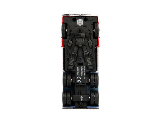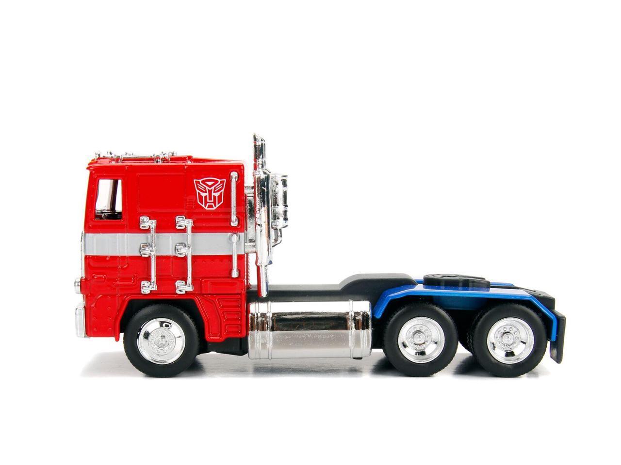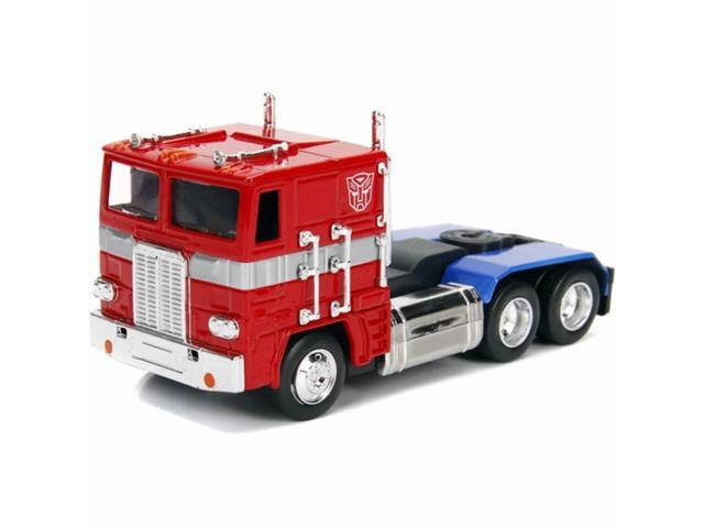 - Brand new 1/32 scale diecast car model of G1 Autobot Optimus Prime Truck Red with Robot on Chassis from "Transformers" TV Series "Hollywood Rides" Series die cast model car by Jada. Brand new box. Real rubber tires. Detailed interior, exterior. Officially licensed product. Made of diecast with some plastic parts. Dimensions approximately L-5, W-2, H-2.25 inches. Please note that manufacturer may change packing box at any time. Product will stay exactly the same.