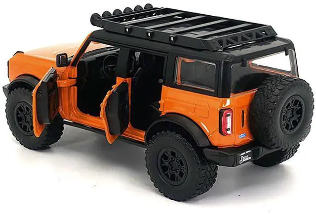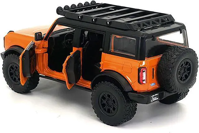 Brand new 1:24 scale diecast car model of 2021 Ford Bronco Orange with Black Stripes and Roof Rack "Just Trucks" Series die cast model car by Jada.