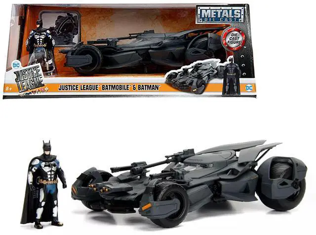 Brand new 1:24 scale diecast model car of 2017 Justice League Batmobile with diecast Batman Figure die cast car model by Jada.