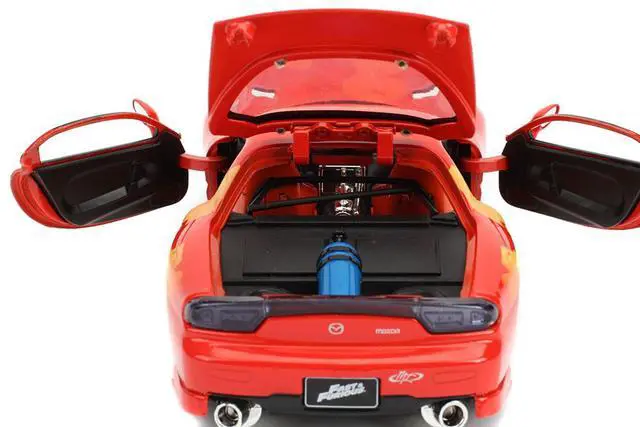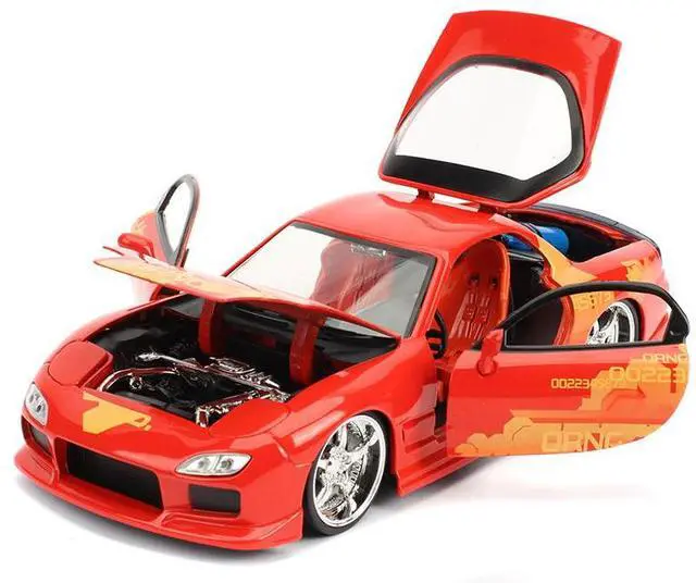 Brand new 1/24 scale diecast car model of Orange Julius' Mazda RX-7 "Fast & Furious" Movie die cast model car by Jada.