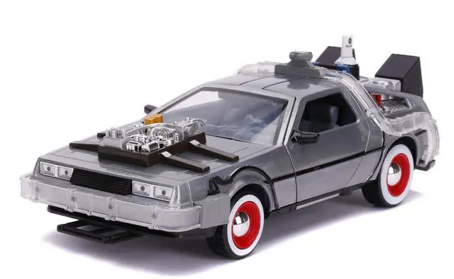 Brand new 1/24 scale diecast car model of DeLorean Brushed Metal Time Machine with Lights "Back to the Future Part III" (1990) Movie "Hollywood Rides" Series die cast model car by Jada.