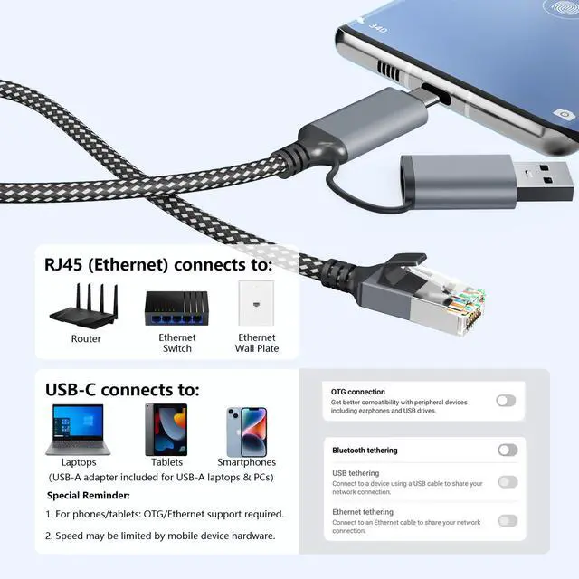 | Special Reminder | 1. Requires OTG support and Ethernet tethering compatibility on mobile and tablet devices |
