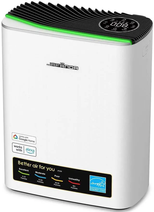 Protect your home from pollutants with the Jafanda JF239 air purifier. With a True HEPA filter, it removes 99.97% airborne particles. Ideal air purifier for bedrooms and large rooms.