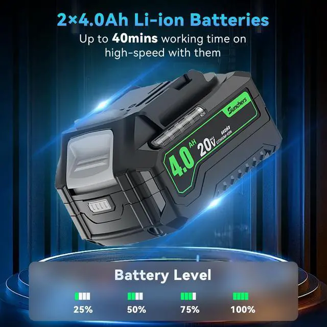 | Batteries | 2 Lithium Ion batteries required. (included) |