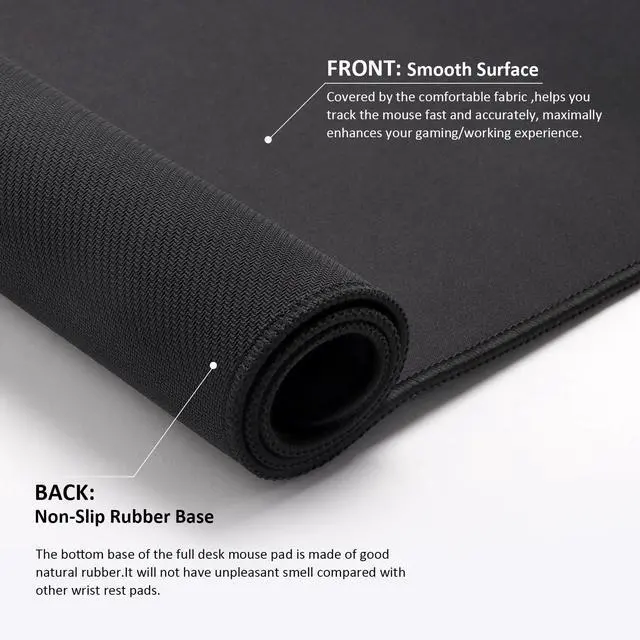 Smooth surface: Covered by the comfortable fabric, the mouse pad has a soft and smooth surface, helps with mouse control as it is less resistant than other products. Movement now is controlled, silky and effortless.