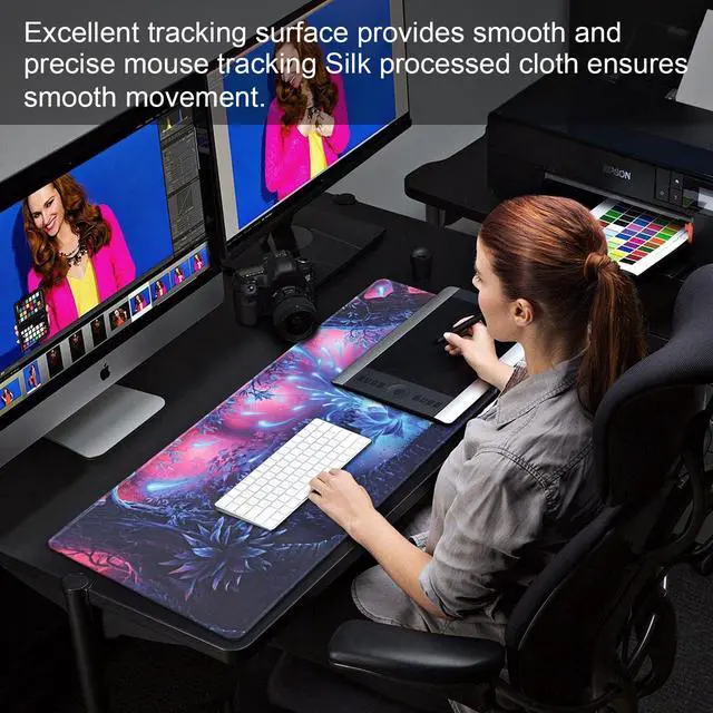 Why do I need a large mouse pad? Why not? * You never have to worry about the edge running again. Perfect size: provides the ultimate gaming and working experience. Now you don't have to worry about the mouse going over the edge. Just focus on the game while the pad gives you all the space in the world! Smooth surface: Covered by the comfortable fabric, the mouse pad has a soft and smooth surface, helps with mouse control as it is less resistant than other products. The movement is now controlled, silky and effortless. RUBBER BASE: provides extra stickiness so you don't slide up at a crucial moment. To win, you must trust your weapons in your arsenal. And mouse pad is sure to be an important tool for a gamer. You can rely on that. PROFESSIONAL EDGE STITCHING Our professional gaming mouse pad has high quality stitching on the edges to ensure it won't fray or fall apart. It is easy to clean. The colour will never fade. We made the best gaming mouse pad in a variety of wonderful colors. Features: * Designed by gamers, ideal for gaming and office work. * Dimensions: L (900mm) x W (400mm) x H (2mm) 35.4 x 15.7 x 0.1 (in) * Thickness = 2mm * Support full size keyboard with more than enough space for the mouse. * Low Friction: Smooth surface for speed and control. * Smooth, breathable, silky Lycra fabric surface * Non-slip rubber base * Optimized for different mouse sensors and sensitivities. * Comfortable and soft * Easy to clean * Ideal gift
