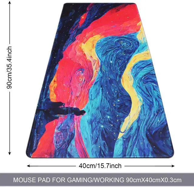 Why do I need a large mouse pad? * Why not? * You never have to worry about the edge running again! Perfect size: provides the ultimate gaming and working experience. Now you don't have to worry about the mouse going over the edge. Just focus on the game while the pad gives you all the space in the world! SMOOTH SURFACE Covered by the comfortable fabric, the mouse pad has a soft and smooth surface, helps with mouse control as it is less resistant than other products. Movement is now controlled, silky and effortless. RUBBER BASE: gives extra stickiness so you won't slip at a crucial moment. To win, you must trust your weapons in your arsenal. And mouse pad is sure to be an important tool for a gamer. You can rely on that. PROFESSIONAL EDGE STITCHING Our professional game mouse pad has high quality stitching on the edges to ensure it won't fray or fall apart like other mouse pads, it's easy to clean. The colour will never fade. We made the best gaming mouse pad in a variety of wonderful colors. Features: * Designed by gamers, ideal for gaming/office work. * Dimensions: L 900 mm x W 400 mm x H 2 mm 35.4 x 15.7 x 0.1 inches * Thickness = 2 mm. * Supports full size keyboard with more than enough space for mouse. * Low Friction: Smooth surface for speed and control. * Smooth, breathable, silky lycra surface * Non-slip rubber base. * Optimized for different mouse sensors and sensitivities. * Comfortable and soft * Easy to clean * Ideal gift