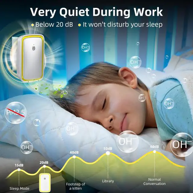 2025 ENHANCED AIR PURIFIER PLUG-IN: Elevate your space with our upgraded air purifier, featuring 3 customizable LED light settingsWarm Yellow, Bright Green, and Light Off. Each mode adapts to your environment, creating the perfect ambiance while quietly enhancing your air quality for a peaceful night's sleep.