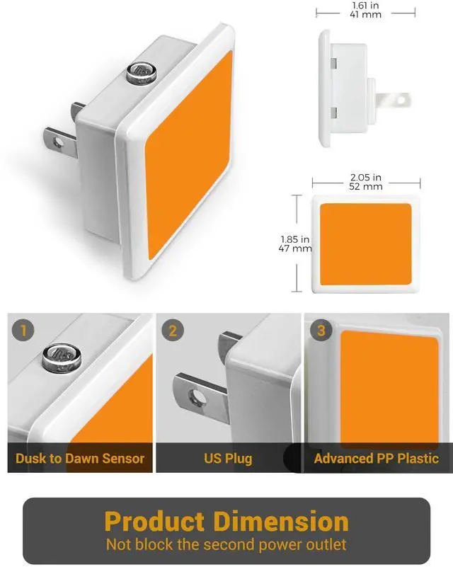 ![Alt view image 7 of 7 - Amber Night Light[2 Pack], Night Lights Plug into Wall, LED Plug in Nightlight with Dusk-to-Dawn Sensor, 0.3W Dim Night Light for Sleep, Bedroom, Bathroom, Hallway, Non-dimmable](https://c1.neweggimages.com/productimage/nb640/C67GD2604210Z4OA219.jpg)