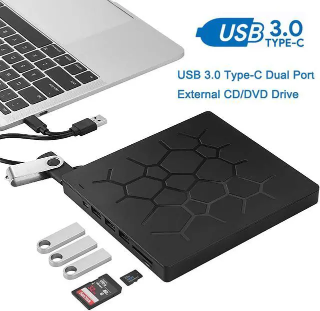 The USB-A and USB-C 2-in-1 cord makes it convenient whether on your new Macbook or old devices with traditional USB ports. The embedded data cable is easy to use and organize, skip-proof rubber pad prevents sliding on the desktop. The designed to be as thin as possible, the Dvd rom external drive is of lightweight and compact size, perfect to carry in your laptop bag, ideal for home, office, or anywhere you go.