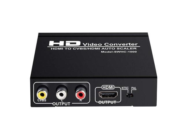 - HDMI to HDMI Video Audio Converter with AV RCA CVBS and L/R output can convert HDMI signal to CVBS composite video signal and L/R stereo audio output, and 1 port HDMI signal which supports DVI system sideline signals. It helps you convert the high definition HDMI signal into normal CVBS signal (standard-definition 480i, 576i). So that you can play Xbox 360, PS3, HD players, HD cameras, VHS VCR, DVD recorders and more on your old analog TV or HDTV.It supports both NTSC and PAL format.