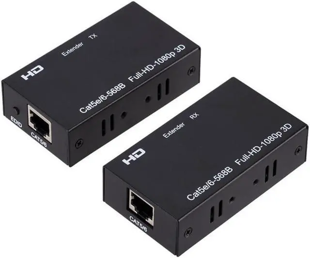 This HDMI Extender extends HDMI signal up to 60 meters(196ft) over single CAT5e/6/7 ethernet cable, saves your cost on long distance HDMI signal transmission.