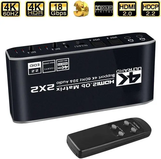 4K@60Hz HDMI Matrix Switch 2 in 2 Out