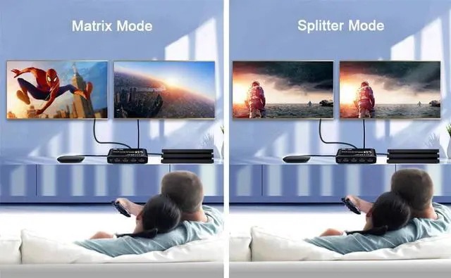 PLUG AND PLAY - 2x2 HDMI matrix is easy to set up and operate,no need for too many settings.